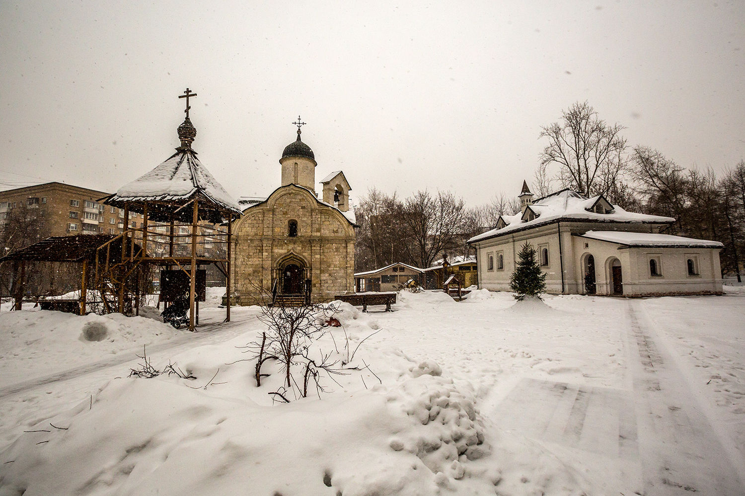 Погода, по мнению москвичей, была самая снежная за всю московскую зиму. Фотографировать было не комфортно. Света нет и снегопад накрывает пеленой... А внутри храма без благословения фотографии не делаю (за очень редким исключением). Сделал несколько фотографий "на память" и забыл. В памяти осталось только, что это какой-то небольшой московский храм в честь Святого Трифона... Так как Трифон считается покровителем охотников, а значит и фотоохотников - отметил для себя важность момента.