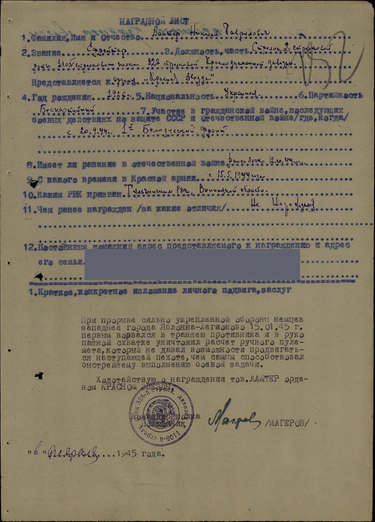 Мой дедушка Лайтер Николай Гаврилович. Ветеран Великой Отечественной войны. К сожалению, его уже нет в живых. Вечная память герою войны!