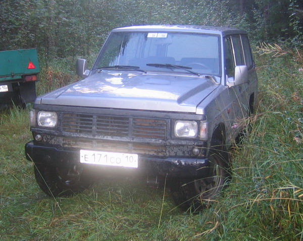 Это Ниссан Патруль 1995 г.в., 2,8 дизель. Упорные поиски заключались в осмотре кучи машин, которые влазили в наш очень небольшой бюджет. В результате этот машин был одобрен, несмотря на то, что за полгода до нас он сбил бычка. К моменту осмотра он имел вд как на фотке, но требовал переборки коробки и была желательна замена форсунок. В феврале такой бооольшой и наглый МАЗ не предоставил преимущество Патрулю и мы стали безлошадными :( Так что сегодня мы скатались в Кондопогу и оставили задаток за буханку - так, что теперь снова будем на колесах :-)