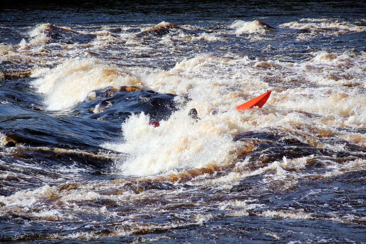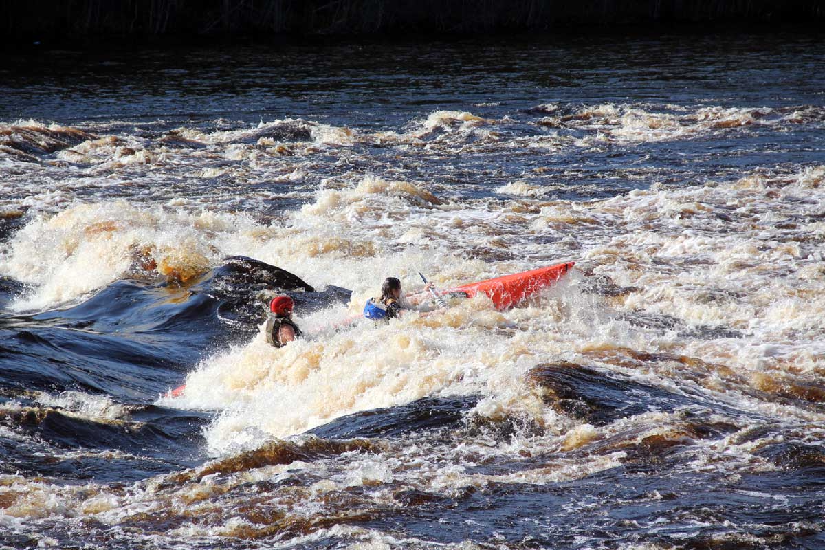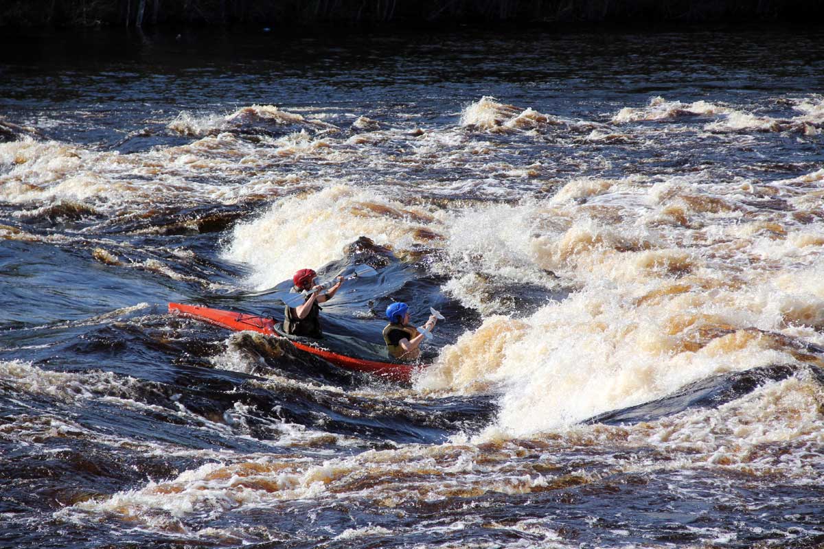 Байдарка двухместная Pamlico 160T от американского производителя Wilderness. Порог Большой Толи на реке Шуя. Все - ок, но дачники в Матросах перегородили дорогу к порогу Большой Толи методом самозахвата и страховочное снаряжение пришлось тащить на горбу в обход "баррикад".