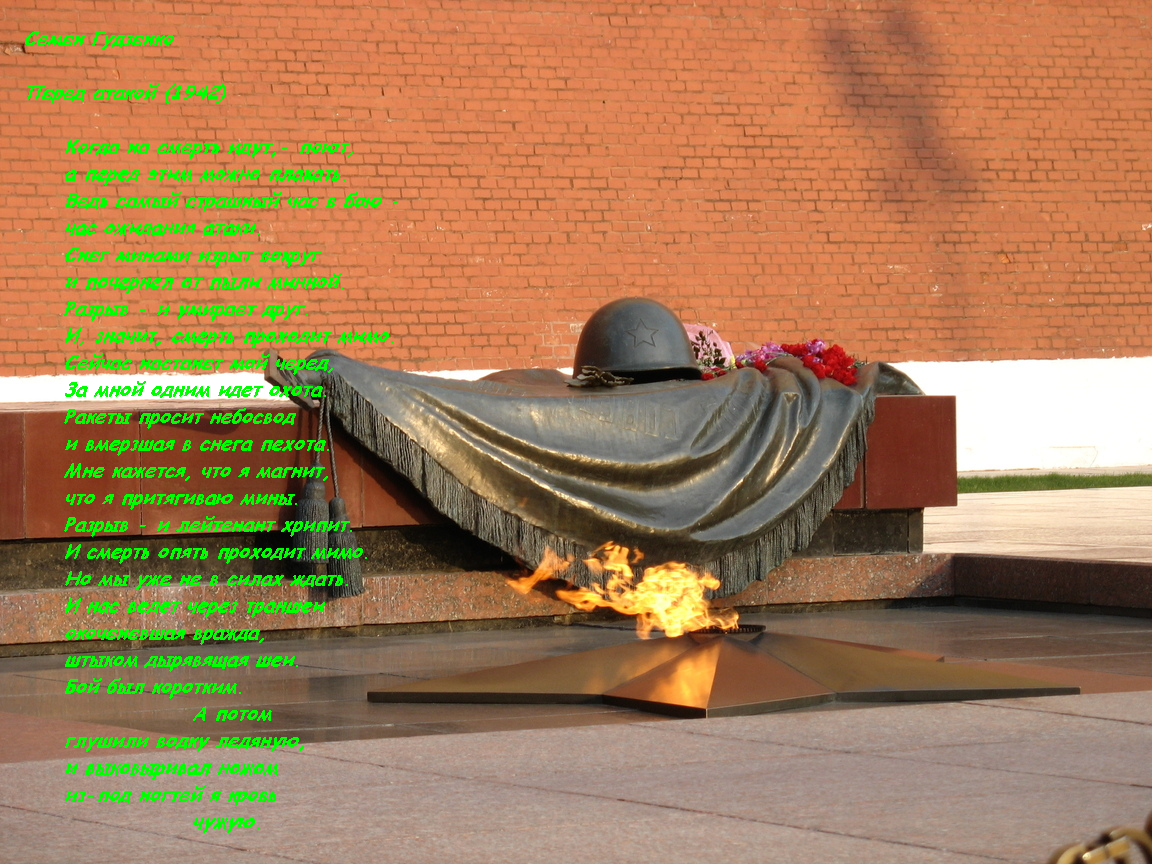 Наш с Вами долг сделать так, чтобы наши дети помнили о смысле праздника, не забыли, чтобы о нем помнили и после нас... Мои дети не забудут никогда, что их Прадедушка и Прабабушка дошли до Берлина, что их Дед отдал, и после тяжелого ранения остался в строю, как погиб его брат, и что Дед с стяжелым ранением глаз не оставил службу. Все, кто участвовал в этой войне - герои. Вечная слава и вечная память, тем кто отдал свои жизни за Победу!
