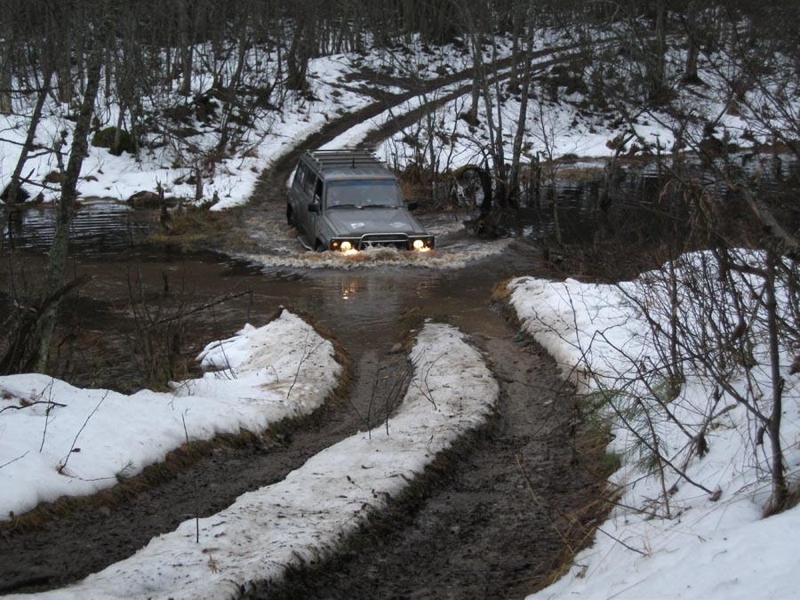 Мой предпоследний лесной автомобиль. Проезжаю по "мосту" через одну из речек, впадающих в Ондозеро (Сегежский район). (Слегка лифтованная буханочка)