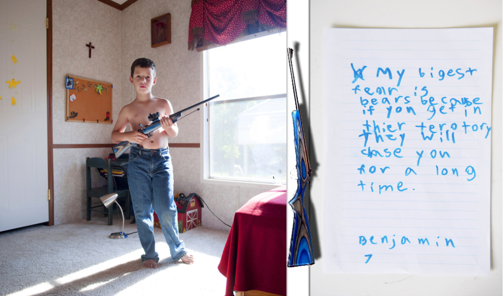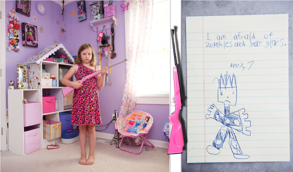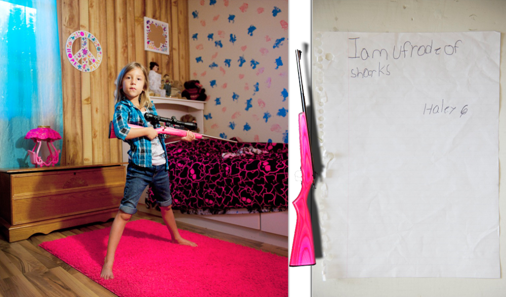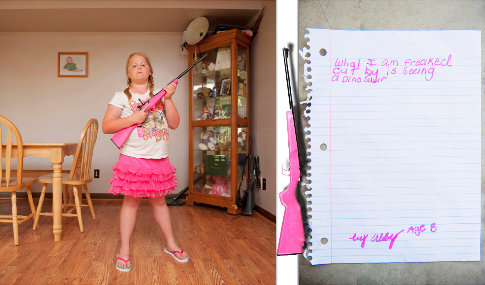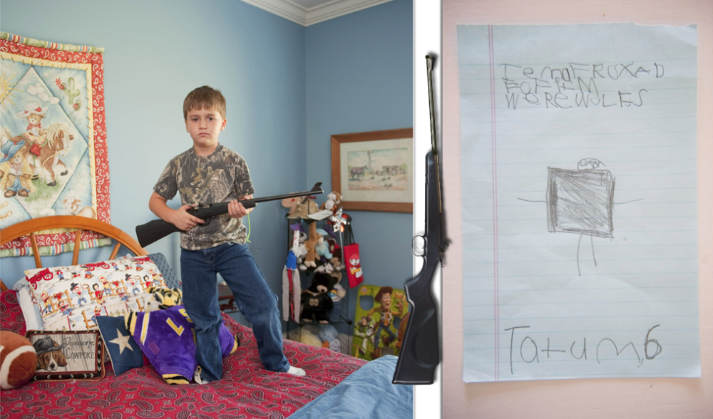 Софи Кеселейн из Бельгии, специально проехала по американским штатам Техаса и Огайо. Она сделала подборку снимков детей с оружием. Возраст их различался от юных 5-ти до 12-ти лет. Все дети имели личные винтовки 22-го калибра. Софи попросила каждого ответить на вопрос, чего он боится больше всего (т.е от чего их должна защищать их оружие)