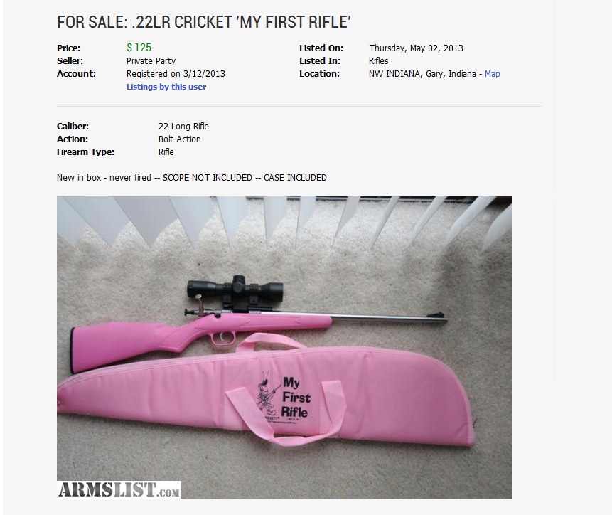 В былые времена это считалось очень ходовым оружием в сельской местности Соединенных Штатов Америки. Во второй половине 20 века спрос на них упал, из-за их однозарядности, но теперь видимо пригодились для детей.
