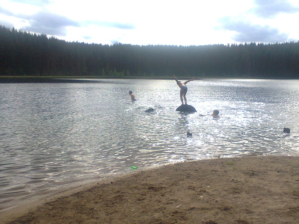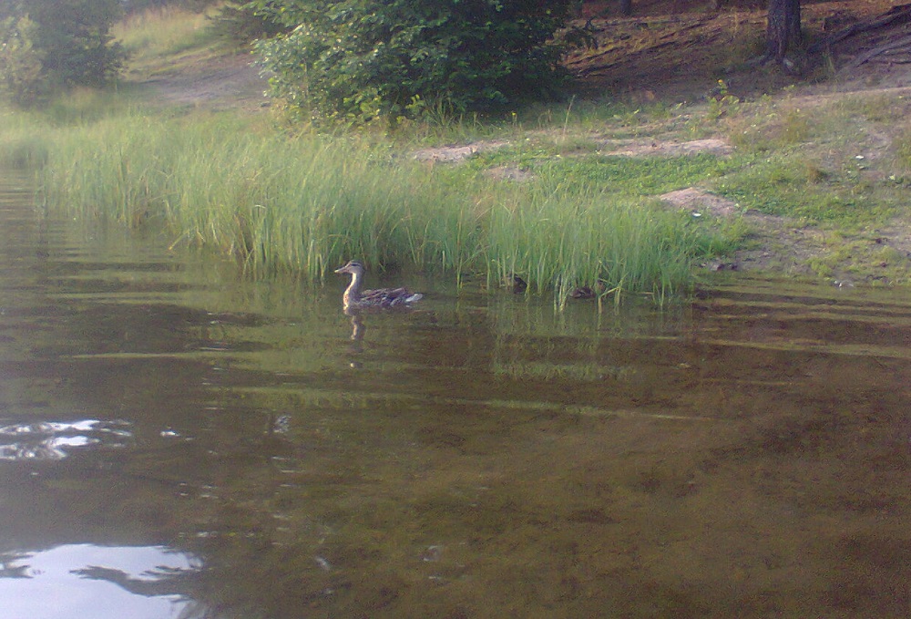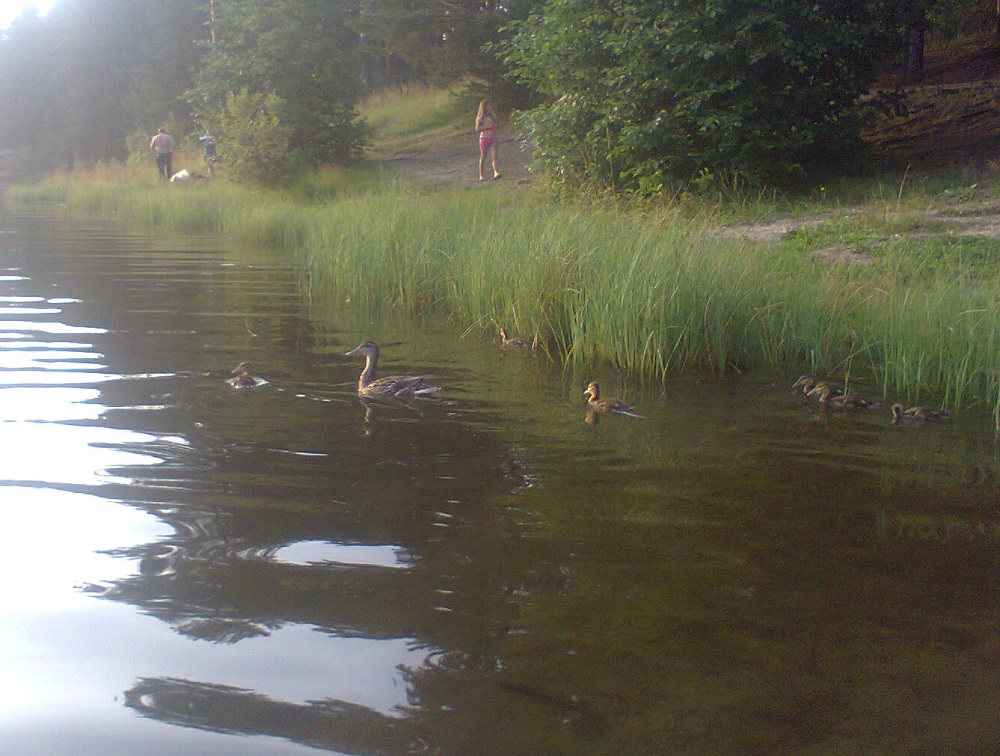 Есть у нас озерко в городке, гуда купаться народ ходит-ездит. Довольно популярное местечко, и вода быстрей чем на Онего прогревается. В черте города, прозрачная вода, дно песочек. Каждый год гнездятся ути, чайки. И вот такая замечательная семейка живет. Купается вместе с ребярёшками, да травку с ряской трапезничают неподалеку. Уже конец июля, а цыплята еще совсем крохи, даже еще не оперились, пухлячки.