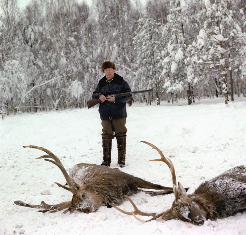 Похож,е что тот же оруженосец в центре кадра. Еще непонятно, зачем второй кабан чернобуркой прикрыт. И что за дама слева? Фурцева ?