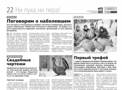 Редакция попросила выкладывать в день выхода номера "полстранички", а с выходом следующей охотстранички дали добро выкладывать полный скрин... Думаю что это логично для поддержки ТВРки - фактически единственная газета, что про рыбаков и охотников принимает материалы в Карелии.