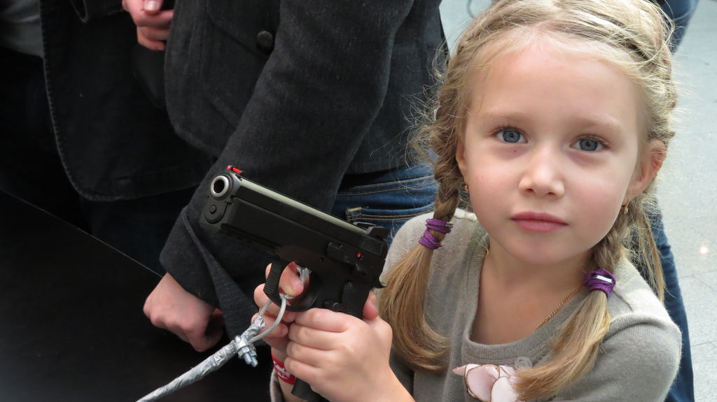 Доча изучает карабин :-):