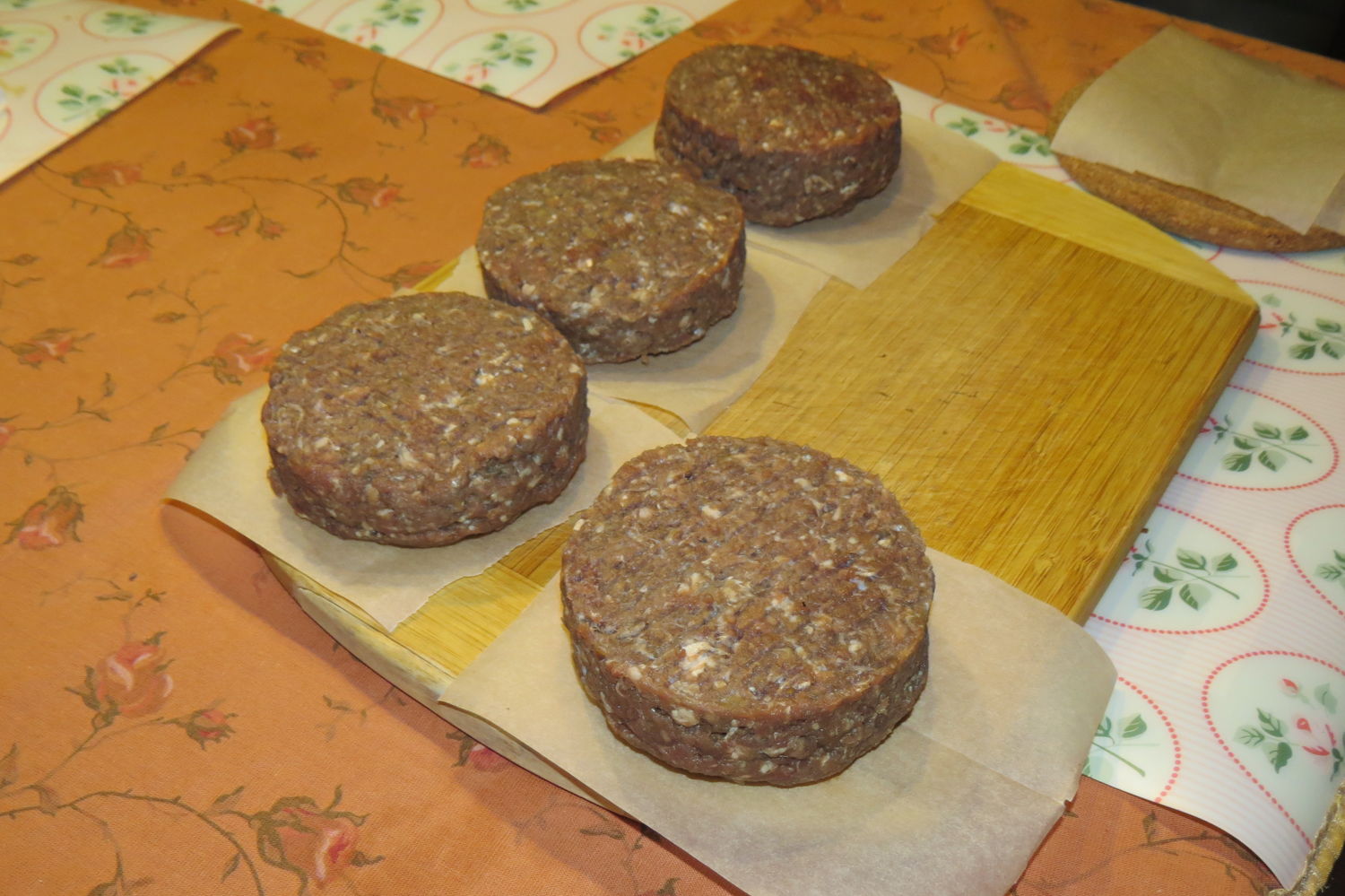 Сформированные бургеры кладем на бумагу для запекания и отправляем в морозилку на 5-7 минут. Для того, чтобы при жарке они не развалились.