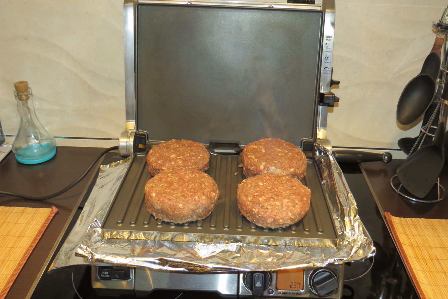 Разогреваем гриль и кладем наши бургеры жариться, масло я не добавляю.