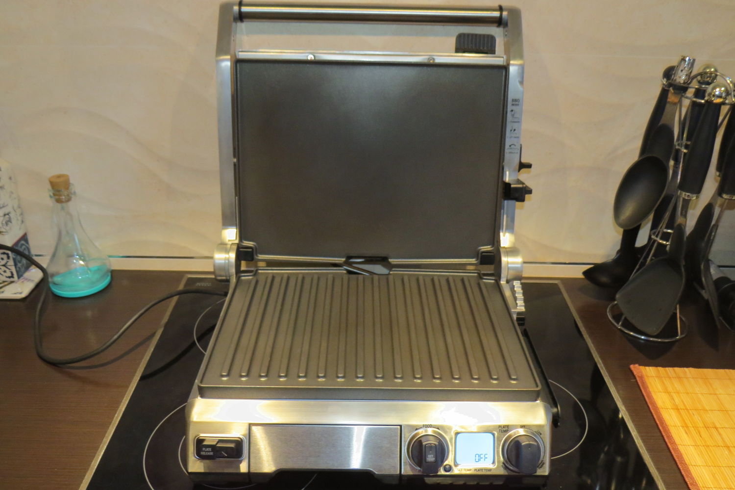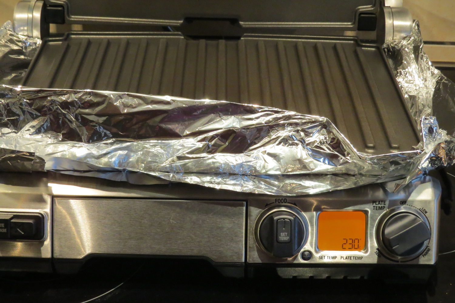 Разогреваем электро гриль. Можно использовать и обычную сковороду, а лучше сковороду-гриль.