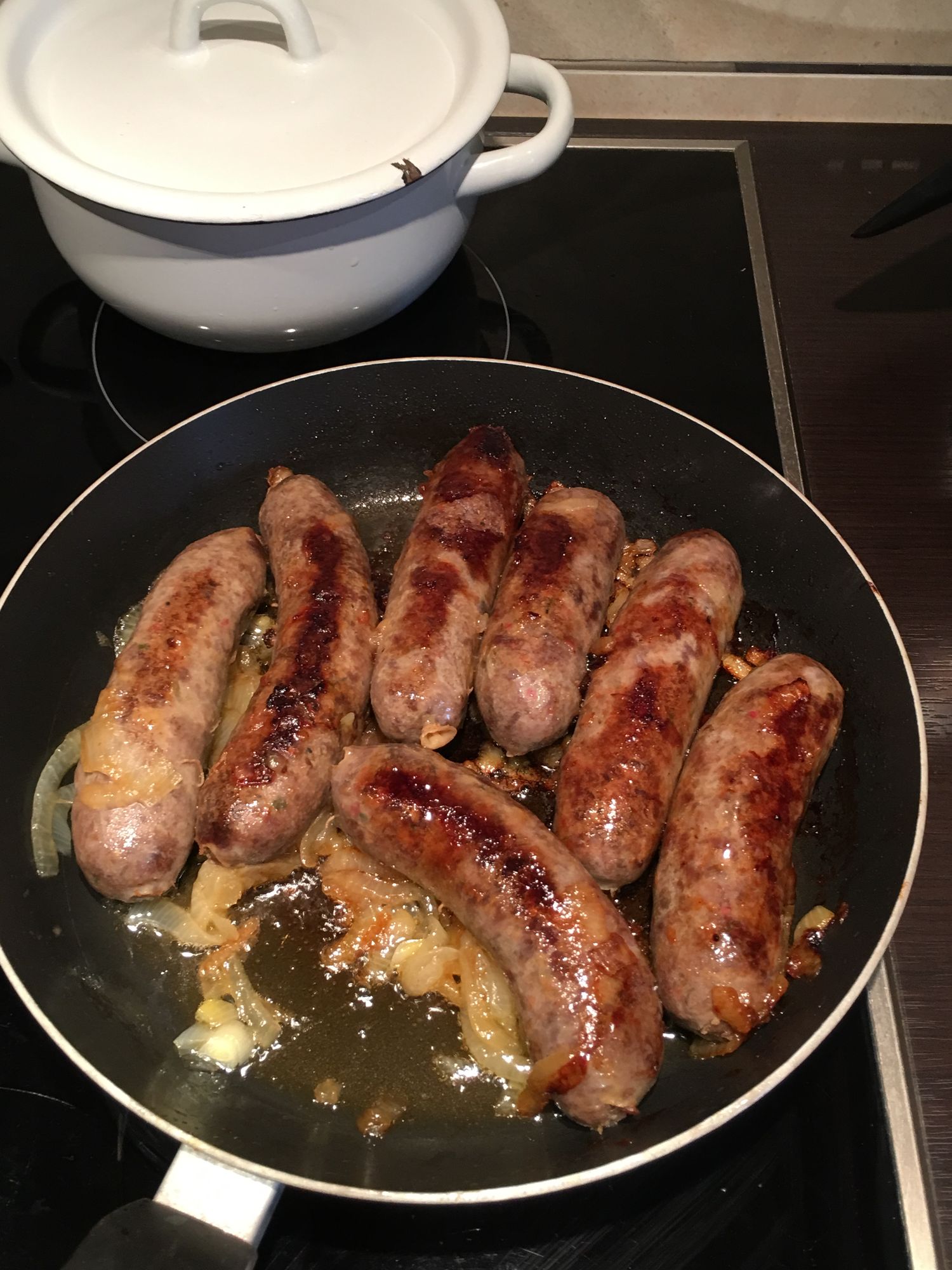 Я пропарил и потом пожарил с луком на сковороде. Колбаски готовы!