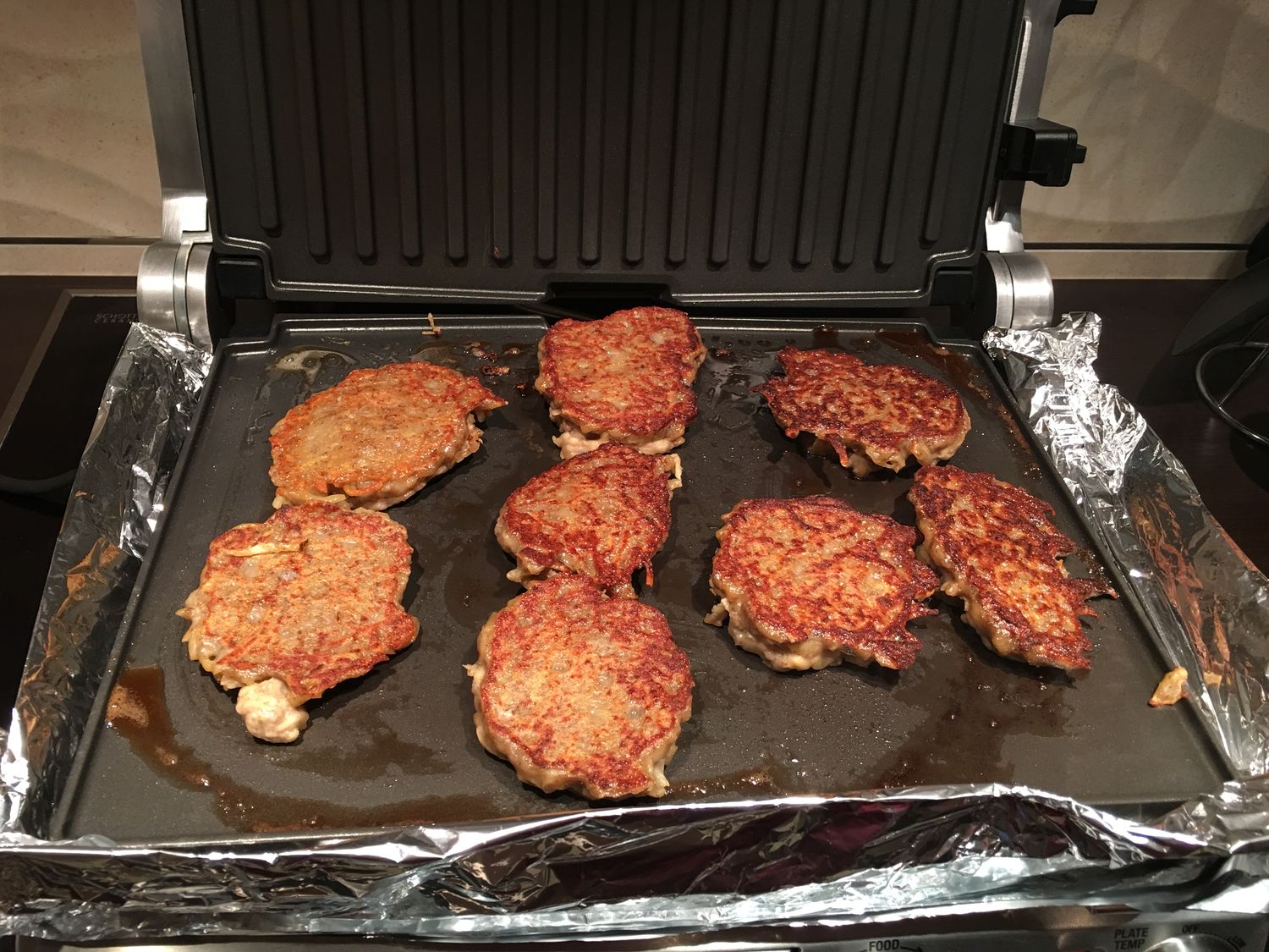 Далее жарим оладьи. Я использовал для жарки электро гриль. Можно жарить на обычной сковороде. Ну, и ужин для семьи готов! Подаем с соленьями и квашенной капусткой!