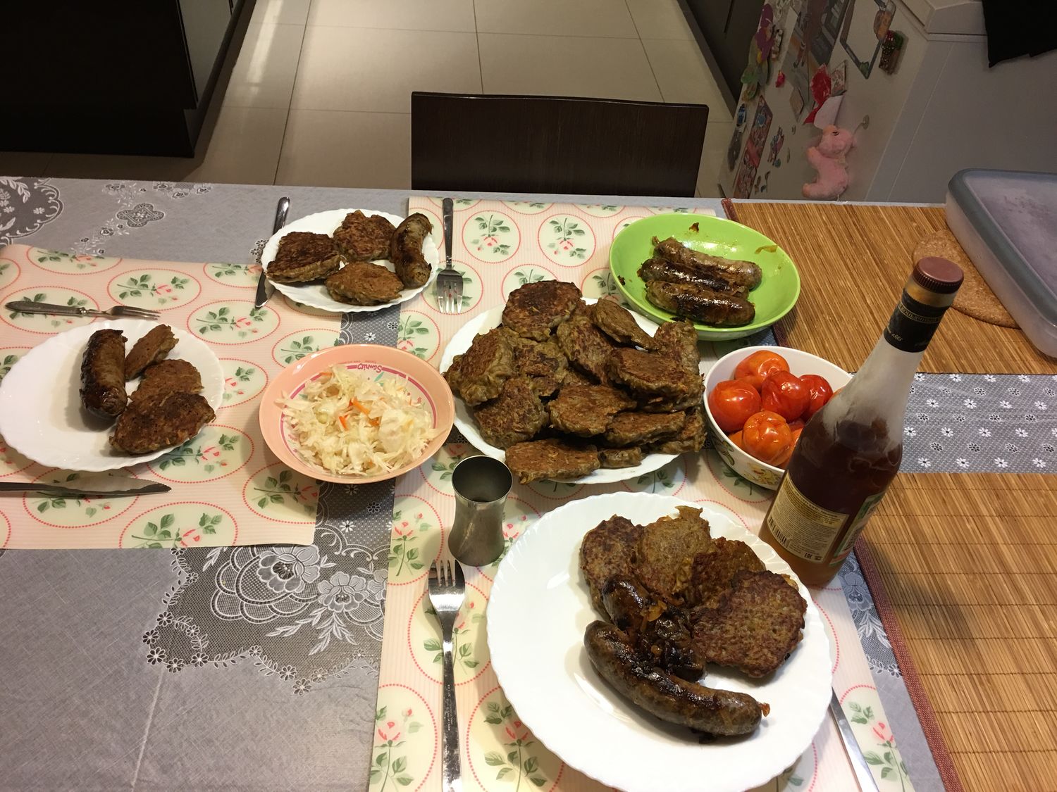 Решил приготовить домашние колбаски из мяса лося и телятины. На гарнир оладьи из картофеля и грибов.