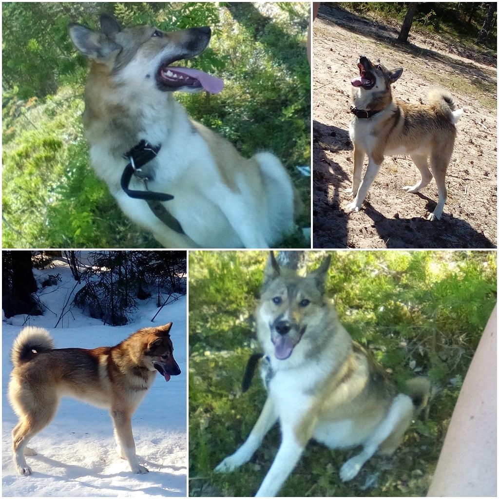 Чистая, упитанная, ручная. Знает поводок, отлично ездит в машине. Судя по всему это русско-европейская лайка.