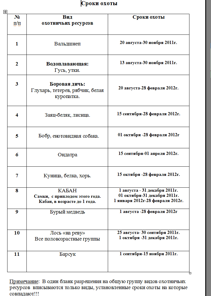 В добавление - красивый график Сроков охоты на разные виды, подготовленный охотоведом КРОООиР- Трепалиным Виктором Ивановичем (Природолюб).