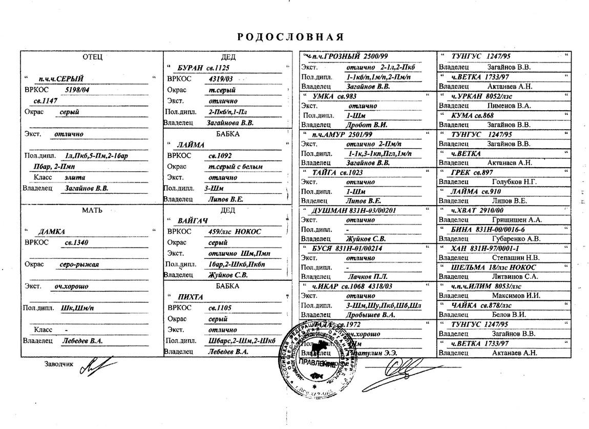 Алексей согласен (Йошкар-Ола по отцовской), у Анчара - отец пч. ч. Серый5198\04, в рейтинге кобелей ЗСЛ 17, инбреден на Тунгуса Загайнова III-III. И у матери Анчара также крови Тунгуса имеются.