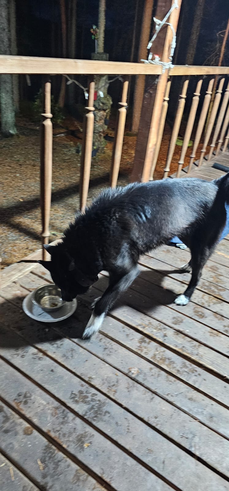 "В Соддер прибилась черно-белая лайка, с радиошейником на шее. Очень ласковая и добрая. От дома не отходит. Контактов на ошейнике нет. Может кто ищет. Тел для контакта 8 981 400 54 73."