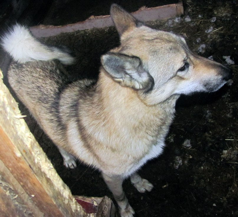 вот что узнала. Западно-сибирская лайка Туйка, 3 года, от рабочих родителей, рыже-пегая, диплом по барсуку и притравка на медведя.