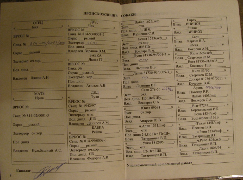 Карма, д. рождения - 27 ноября 2004г., ВПКОС 2635/10, высшая оценка экстерьера - отлично, племенной класс "Элита", Второе место в ринге в средней возрастной группе на монопородной выводке КФЛ, в г. Петрозаводске 28.05.2006г. Сын Кармы, Саян, д. рождения- 24 февраля 2009г., ВПКОС 2636/10,высшая оценка экстерьера - отлично, племенной класс - 1, Третье место в ринге в средней возрастной группе на межрегиональной выставке КФЛ в г. Пермь, 10.04.2011г.