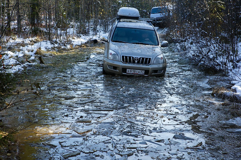 Там лед был весьма и весьма. Человека держал. Но это "там". На лужах лед 5-7 см толщиной. Суточный. Броды проламылвали - на фото от Игоря Подгорного видно (прицепил к сообщению) .