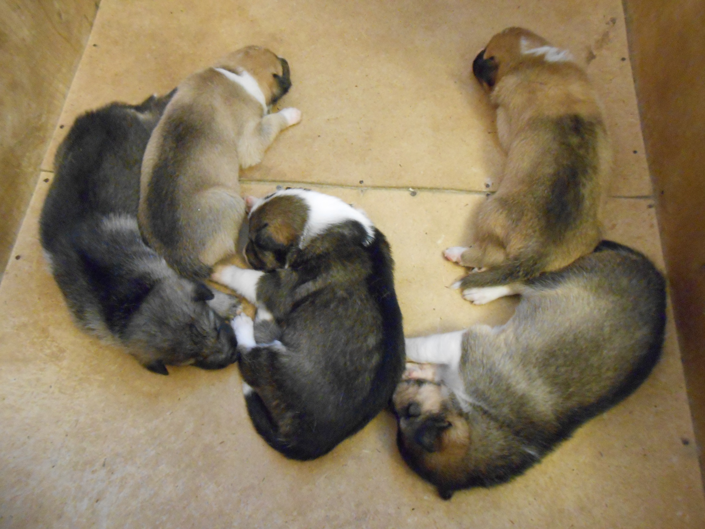 В помёте 2 кобеля серый и рыжий и 3 суки одна рыжая и 2 серые.