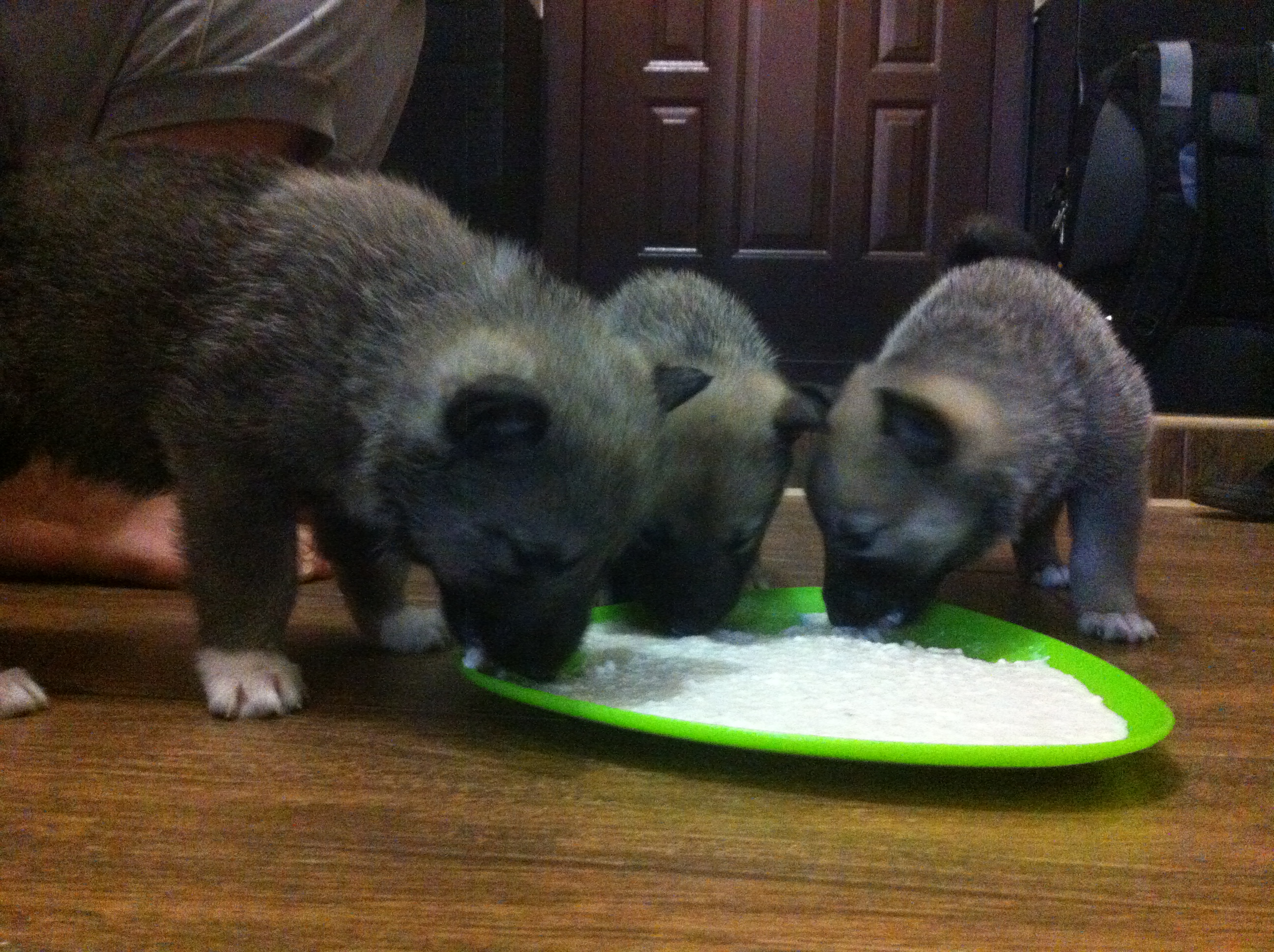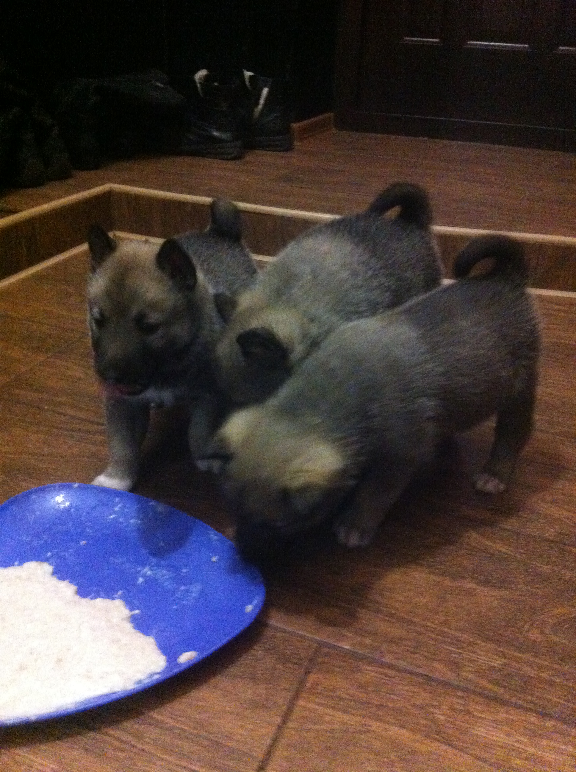 Щенки уже лопают сами.