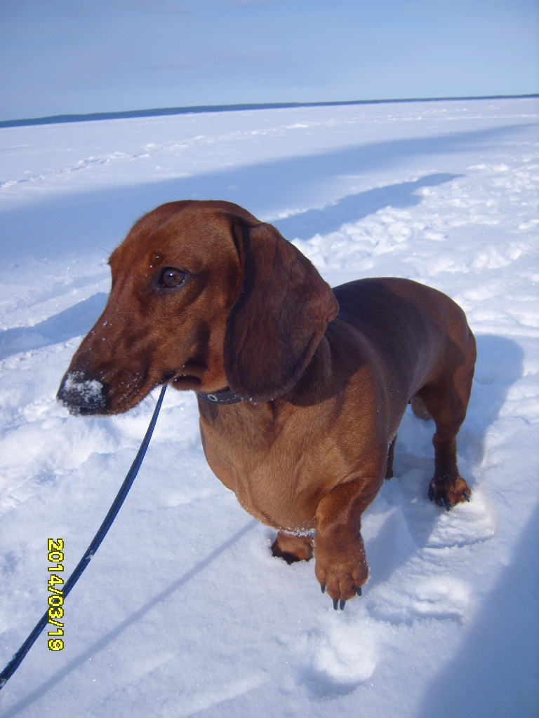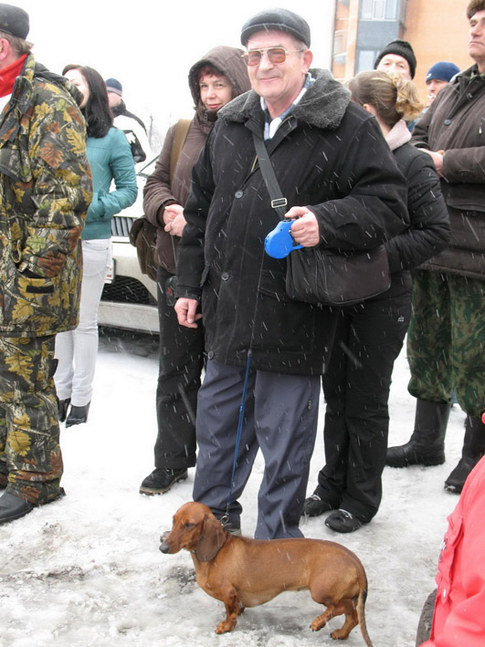 (Выражаем благодарность пользователю "АЛИСИЯ" за предоставленные фотографии!) И мы в строю охотников Карелии (и даже к начальству поближе). Следует добавить,что такса DL РАШЕЛЬ по всем параметрам получила оценку "отлично",что удостоверено подписью эксперта и печатью.Но из-за отсутствия диплома по рабочим качествам,медаль ей присуждена не быда.