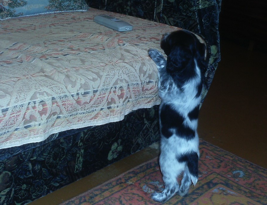 Не спец, но сейчас глянул еще в стандарт. Но вроде отклонений по стандарту во внешнем виде и в поведении нет . Щенок все такой же подвижный, активный, сообразительный малый. Ненавязчиво, но постоянно занимаемся, стараюсь не нажимать или вовсе не давать какой либо команды если вижу, что в данный момент может не выполнит. Основной "упор" на останавливающие команды- "нельзя" и "сидеть". Выдержку стараюсь отрабатывать. "ко мне", "ищи", "подай", "дай", "место". Крылышко в квартире отыскивает на ура, настырный. Пока отрабатываем эти команды.
