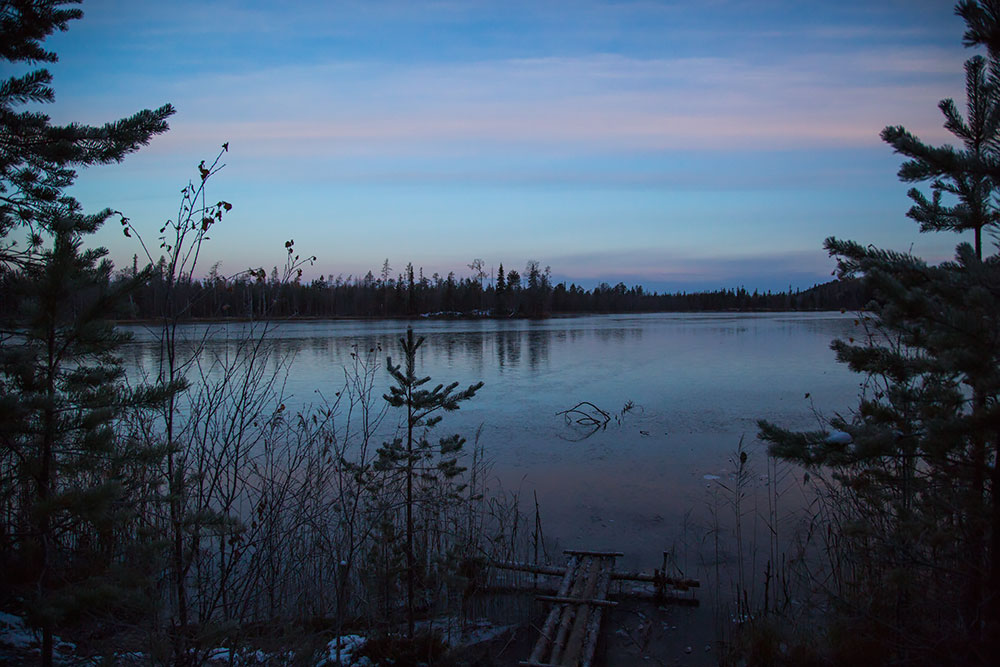 Первые забереги на озере появились уже после первой ночи. А на третьи сутки лед почти перехватил озеро. В последний день экспедиции по льду уже можно было ходить. Вот такая перемена погоды. Ночью минус 12. Днем плюс минус ноль.