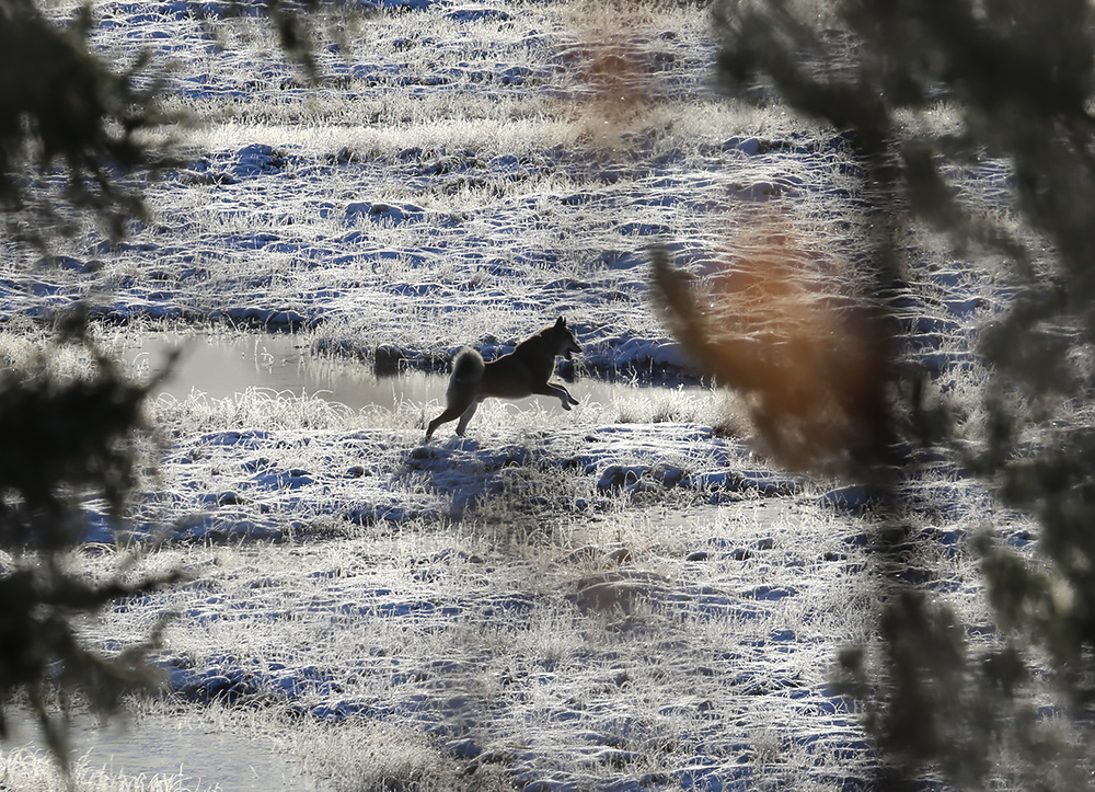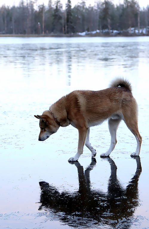 Кстати, мы реально освоили новый стиль общения с бобром. Первой время, он был от нас далеко, беседовал с уткой. Нам надоело и мы стали хлопать по воде. То бревнышко кинем, то снежный ком, то веткой шлепнем. В результате бобр приплыл поглядеть. На берег не вылез, зато ударами хвоста "конкурентов" попугал. Затем мы стали ломать тонкие веточки. На морозе чудесный хруст. Точь-в-точь, как бобр грызет дерева. В результате бобр дождался темноты и приплыл к нам. Вылез на островок метрах в двадцати и стал за компанию с нами грызть ветки. Что ж.. "Приплывем к тебе завтра" -думали мы - возвращаясь к берегу. Дорога к биваку была не простая - ледокольная. А на следующий день собаки смело разгуливали по озеру. Точнее один пес смело, а второй, не веря в чудо твердой воды, не дальше трех метров от берега. Лодку списали на сушу до весны.