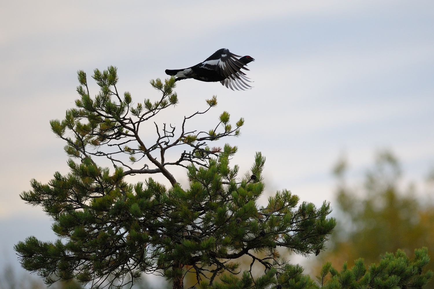Ну вот и пришла золотая осень! Самое замечательное время года, особенно для охотника. Душа и всё-цело просится в лес, прогуляться: кто с ружьём, кто с фотоаппаратом, кто с корзинкой. Услышал я накануне по утру тетеревов, думаю: "пора на любимое болото, повидать "своих" чернышей". Будильник на 3 часа, быстрый перекус, заправка, гаишники...и всё, я в лесу. До тока добрался к 6:00, сломал сушину, посадил на неё своего "помощника" и в шалаш(который, кстати, еще весной какой-то человек поставил, а я недовольный был.. Но это тогда. А сейчас, осенью, говорю "спасибо"! :nez-nayu: :mi_ga_et: ). Снова перекус и давай чуфыкать, звать тетеревов. Отсидев часок, думал не прилетят, но вдруг слышу - отвечают и через минуту всей гурьбой летят :ta_n_cor: . Расселись, один мне "на голову", несколько по сушинам, остальные свалились на ковер из мха и клюквы и давай, как обычно, только чуть менее активно драться и чуфыкать. Продолжалось все минут 10 и что-то их напугало, все снялись и ушли далеко...Очень жаль, что практически ничего не удалось снять, но главное - я был там, видел, насладился :a_g_a: :-): Немного фото Вашему вниманию.