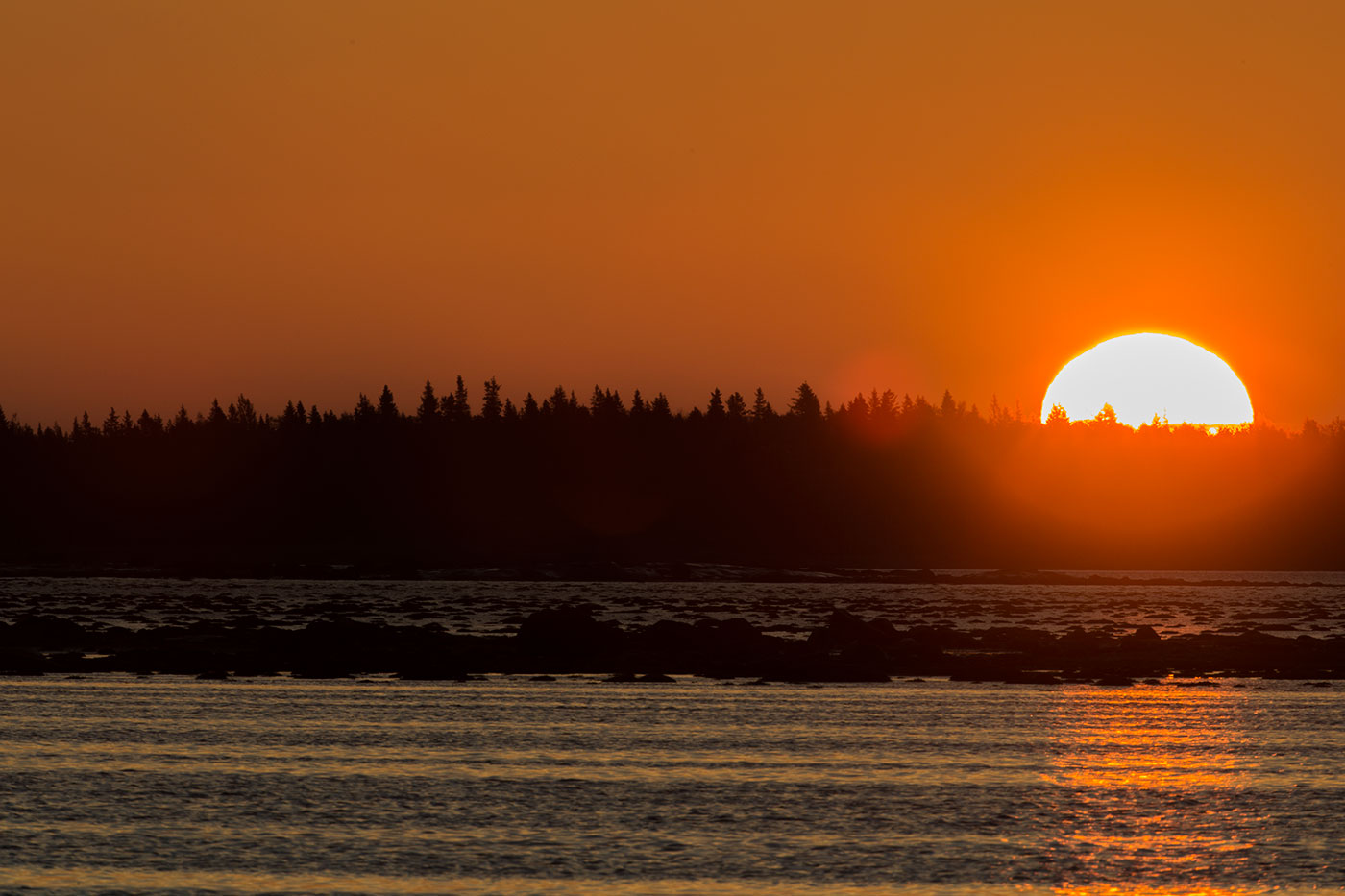 Проснулся в пять. Начало рассвета на Белом море. Пощелкал камерой. Дождался когда солнце поднимется на горизонтом, сел на велосипед и уехал в новые для меня места. Накануне мне рассказали местные охотники про один бор, где есть тропа, много брусники и были встречи с рябчиком.