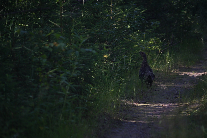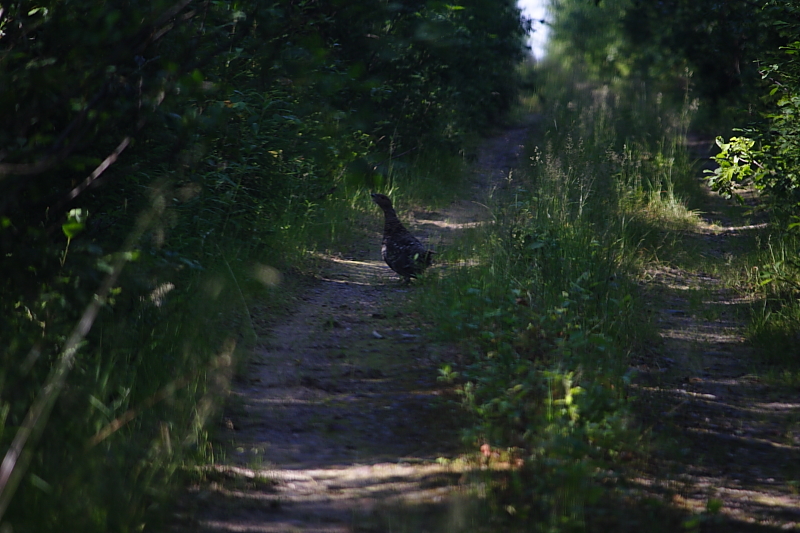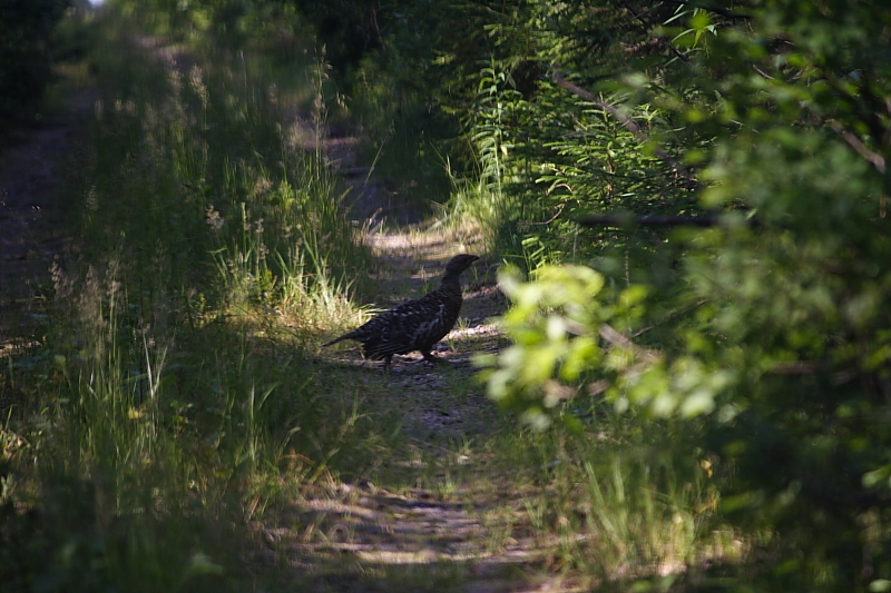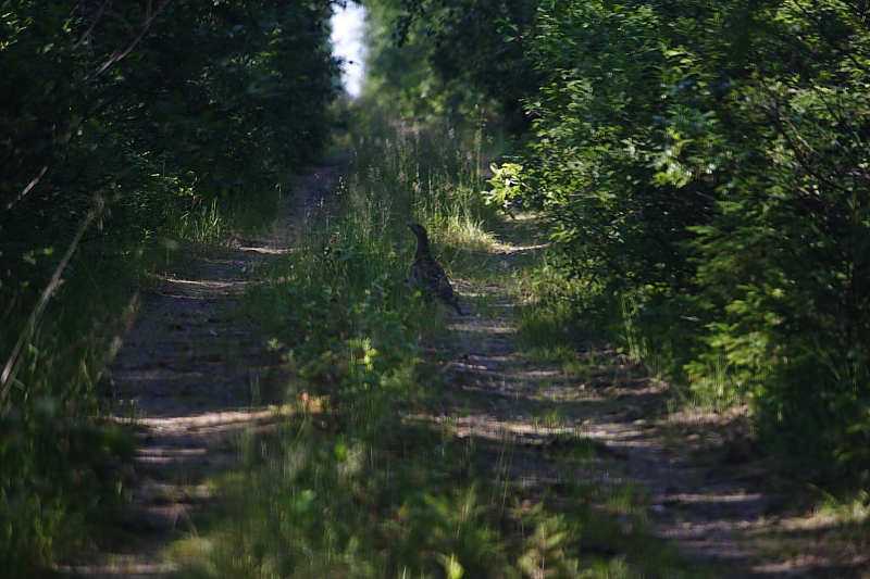 Потом попалась копылуха, которая гуляла по дороге и так и не улетела, доехал до нее почти в плотную, к сожалению она стала по правому борту и потом так пешком и пошла в лес даже не полетела. Не смог дать совсем крупный план.