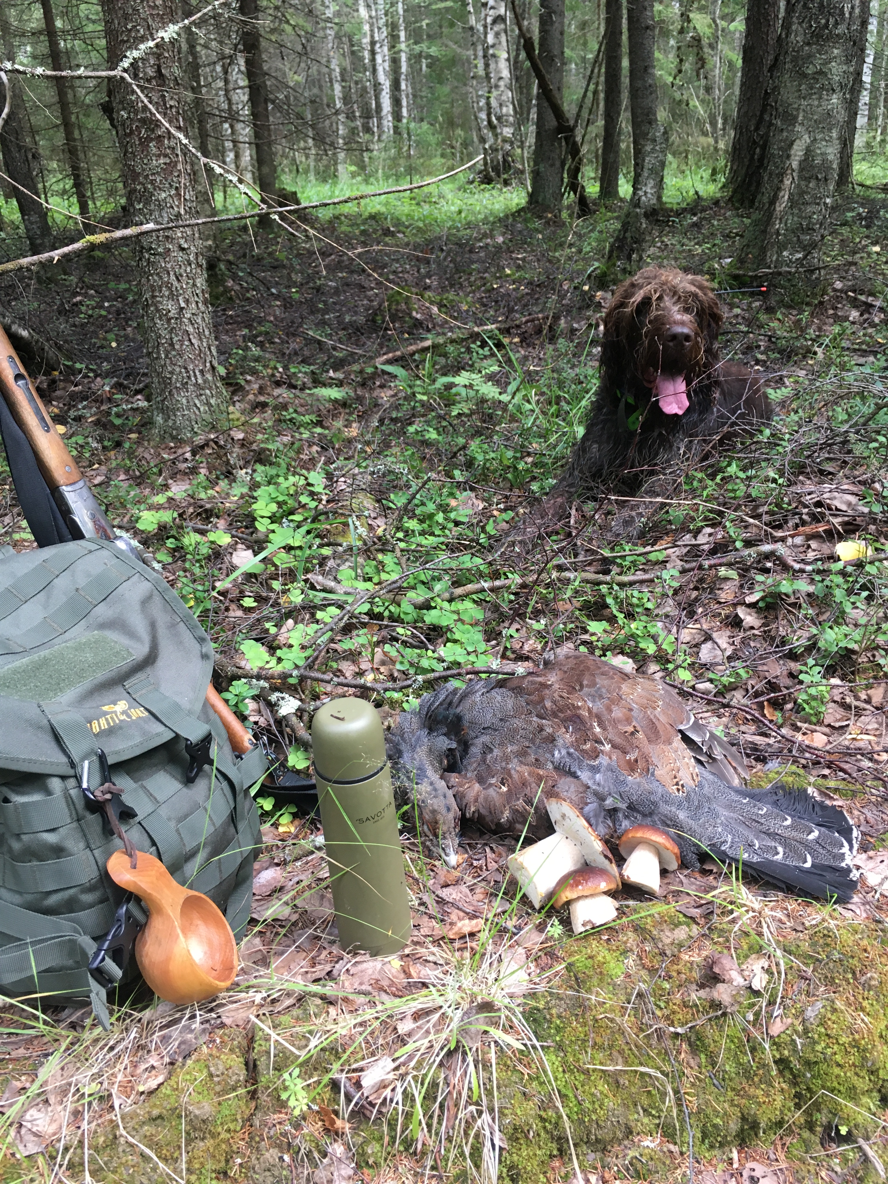 Такая вот, тихая охота. Прогулялись по лесу, собрали грибков, погоняли рябца, облаяли дятла и грибников.
