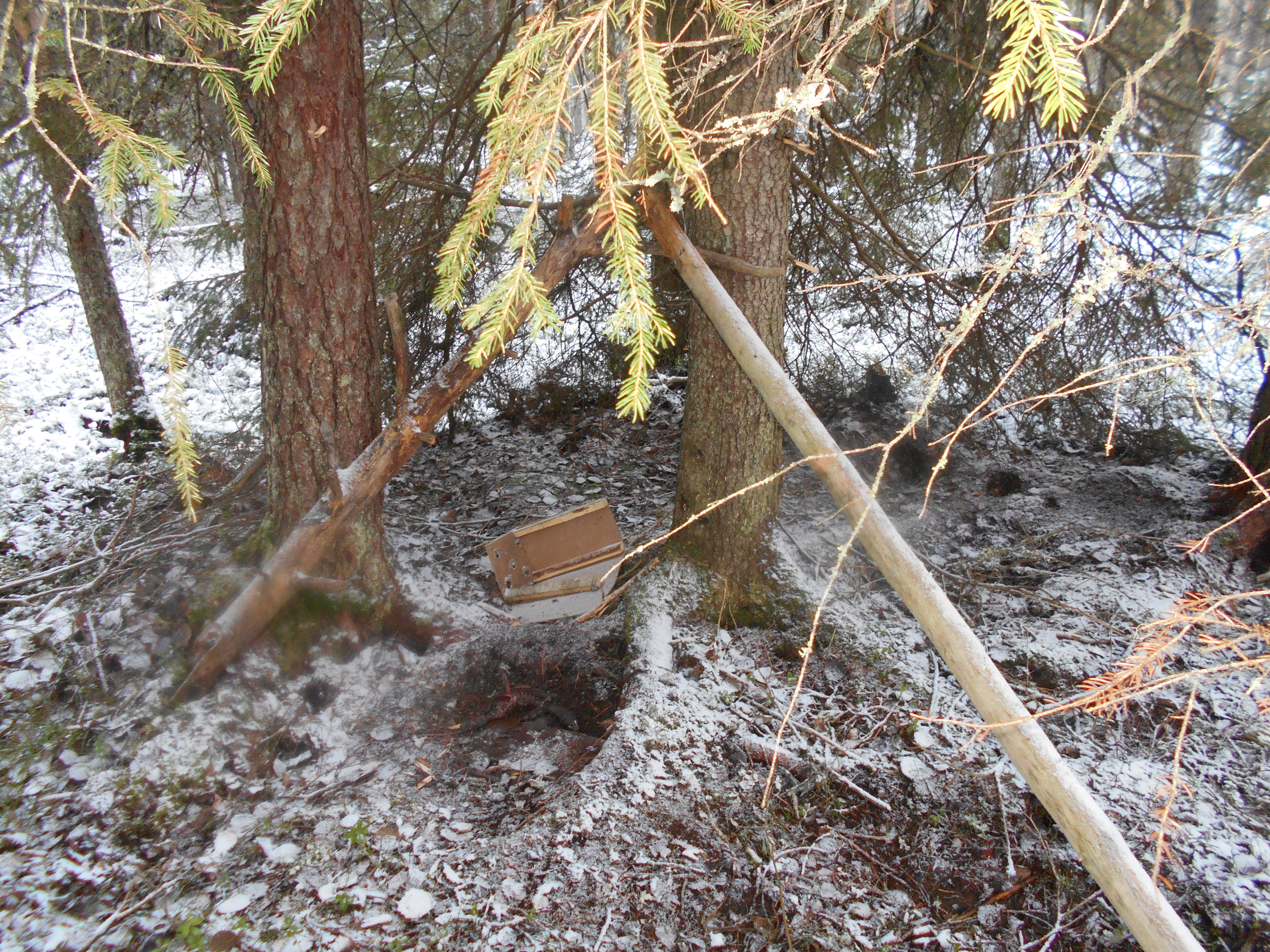 Оказалось это были не все сюрпризы. В субботу доехав до места, где оставляю машину, обнаружил что по пути где-то проколол колесо. Жгуты были с собой,обратил внимание, что прокол странный, прямо в протекторе и узкий продолговатый порез, как-будто канцелярским ножом проткнуто. Промелькнула мысль про доброжелателя, но не стал паранойить. Пройдя по путику ничего нового не обнаружил, кроме новых набродов куницы. Вспомнил про солонец, который был установлен, в рамках биотехнический мероприятий, метрах в 70 от ящика с капканом. Подойдя к нему, почему-то даже не удивился, кубика соли 10 кг, на нём не оказалось и пропал пакет с обычной солью 3-4 кг, висел на сучке.Вернувшись к машине колёса были все в порядке,осталось проверить пару капканов на обратном пути. Через 500 метров у последнего капкана обнаружил что спускает другое колесо и порез точно такой же, отремонтировав поехал домой,думаю может всё таки не паранойя?! Выйдя сегодня на работу, коллеги показали пост в группе в ВК https://vk.com/wall-36167055_20054, какой-то "хозяин" Кутижемского ОХ завёлся. Все куницы его, хоть и в чужих капканах, солонец здесь "не нужен", это он за лосей решил, и по дороге чтобы не ездили.