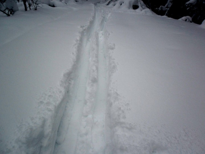 Лыжня получилась интересная. Где-то две "канавки", где-то одна. После первого километра - была только одна канавка - тело оптимизировало движения.
