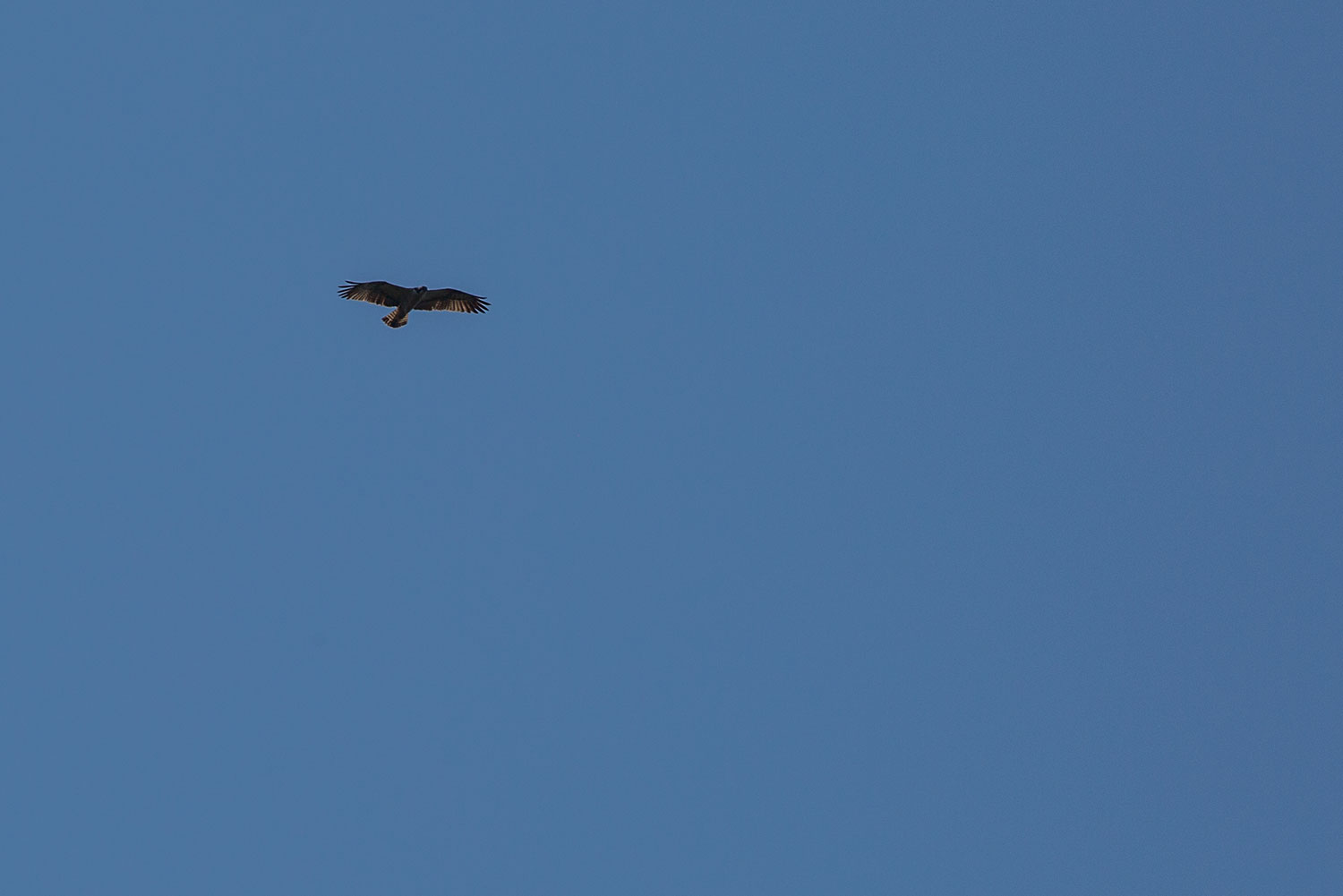Собрались. Упаковались и в путь к месту высадки к автобусу... А в небе над нами неизвестный хищный провожатый. Каждый раз так. То ворон, то еще кто-то подсматривает: "В порядке ли мы оставили лес, да не прихватили ли лишнего чего..."
