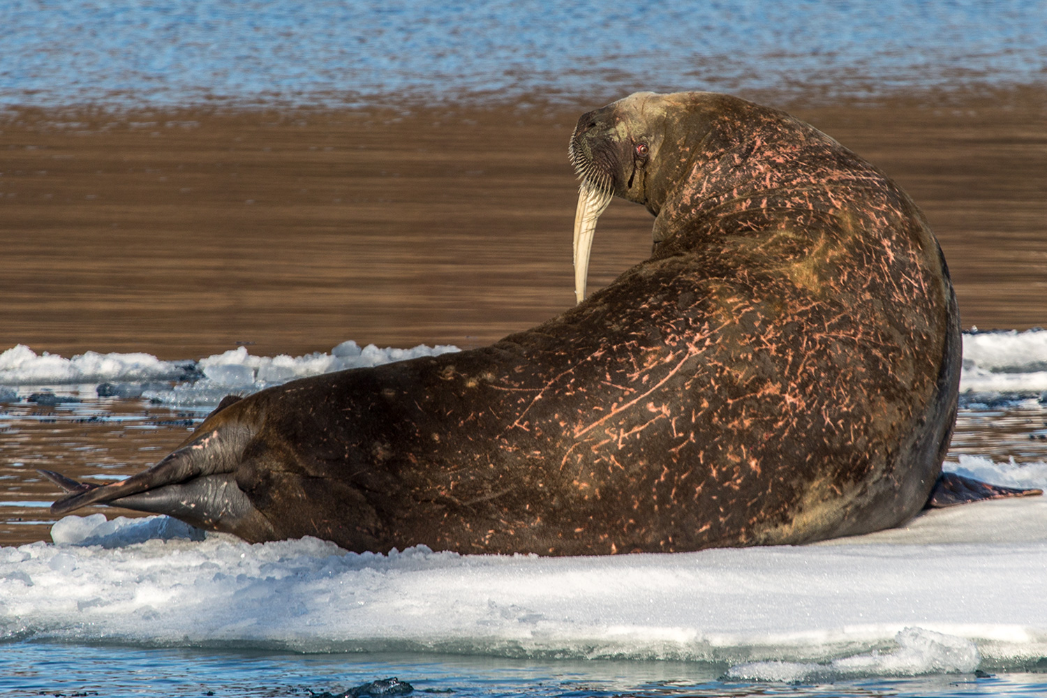 Основное стадо - рядом, их лежка в трехстах метрах на большой льдине. Но после ранения малыша - мама предпочла уединиться. Опасности нет - впереди еще много встреч с острыми бивнями. Но ранку надо залечить сразу.