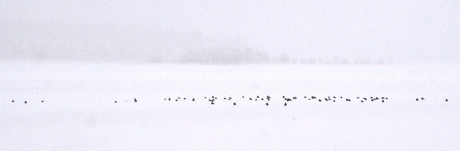 Идет снег, дует сильный ветер. Чего они там забыли на озере ?
