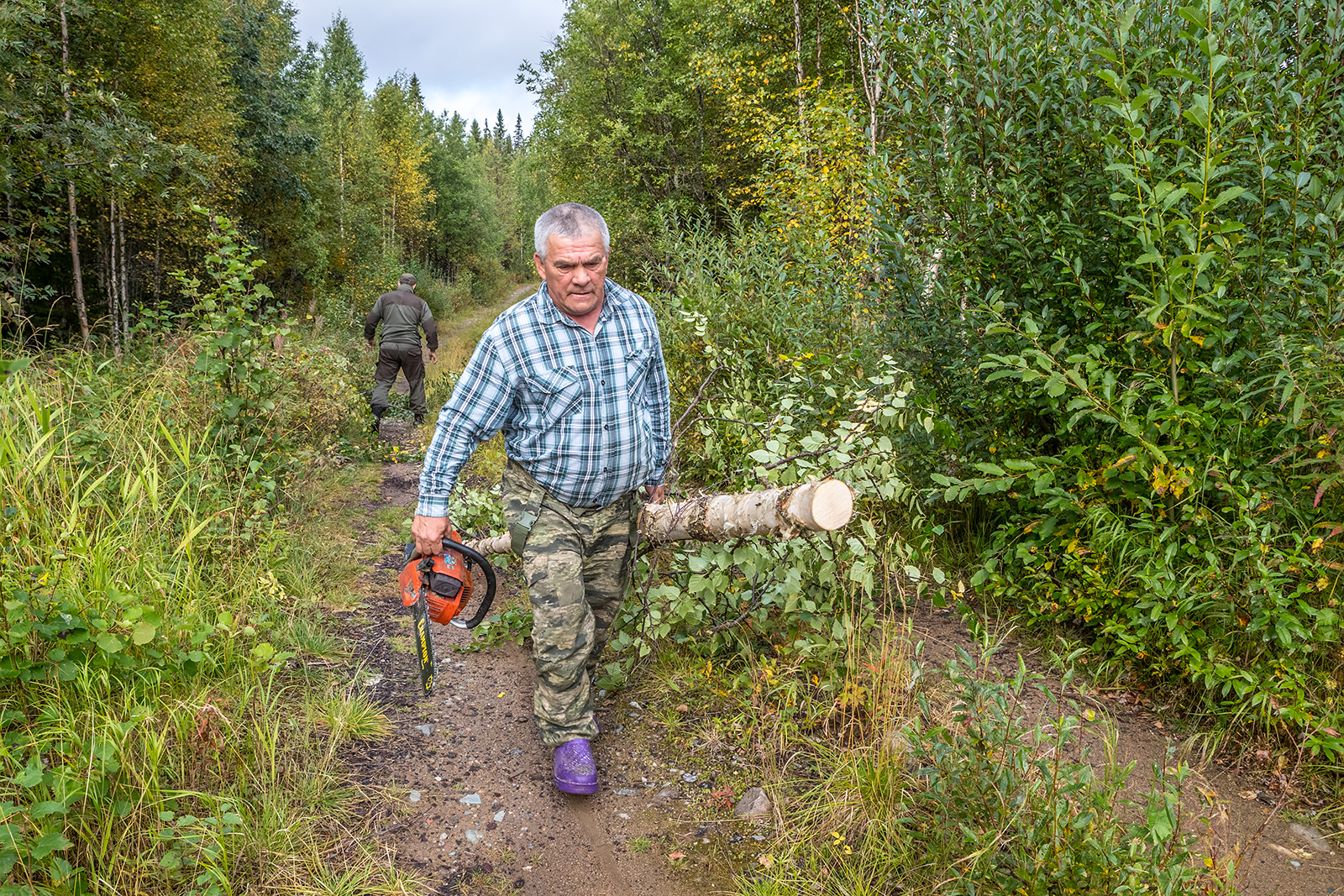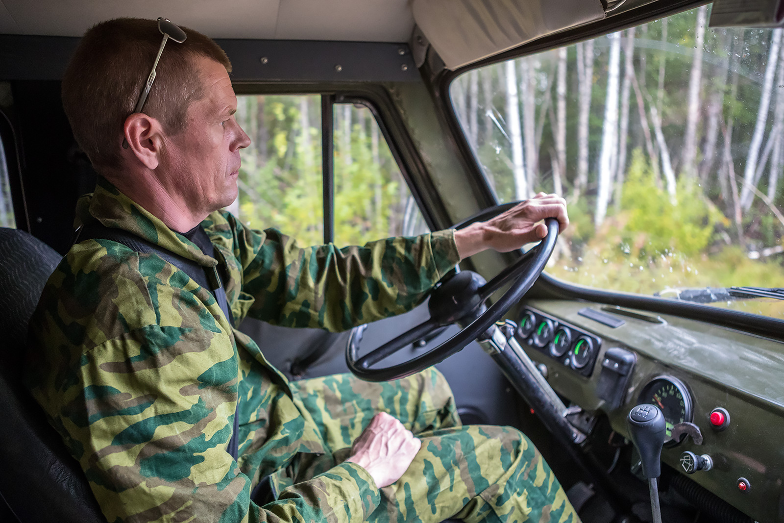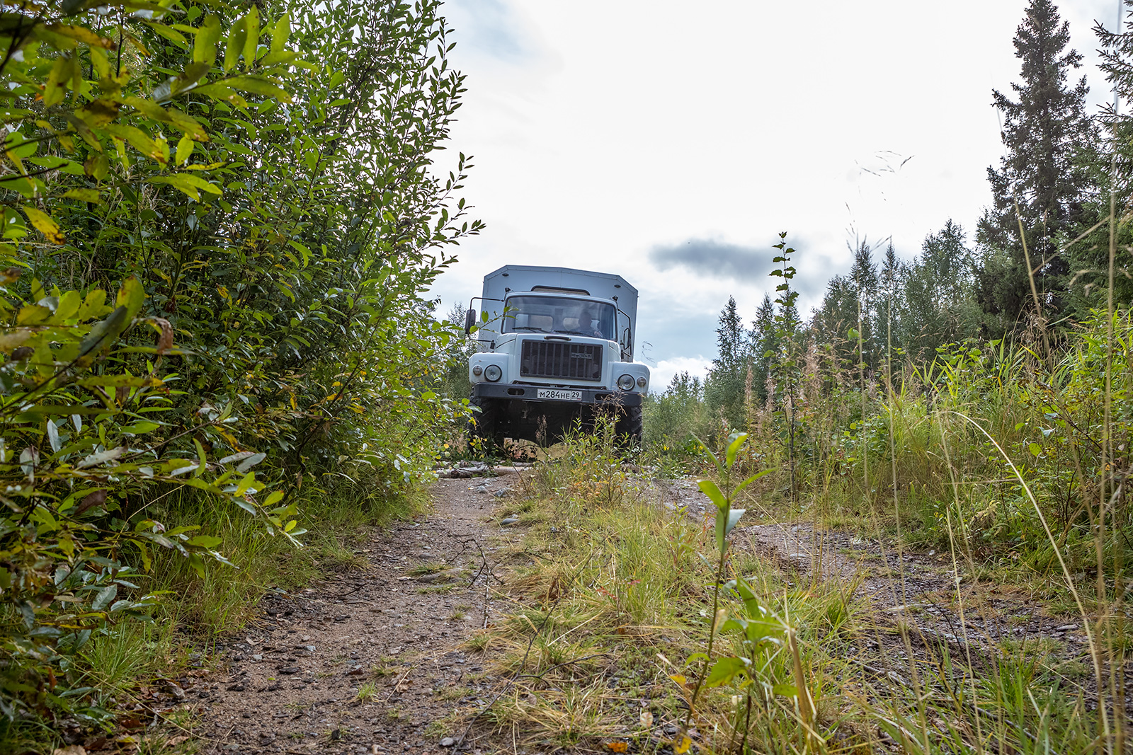 Заброска на северные территории нацпарка занимает два дня. День по бескрайним дорогам Карелии и Архангельской области, а затем на вездеходной технике до первого кордона. По асфальту и проселочным дорогам на УАЗе от Петрозаводска до поселка Золотуха - 450-500 километров. Далее, вездеходным ГАЗоном, по лесным дорогам - до места стоянки болотохода. В Золотухе краткий ночлег в мобильном блоке - жилом "контейнере". И снова в путь – с ремонтами мостов и объездом препятствий до места стоянки вездехода ТРЭКОЛ.