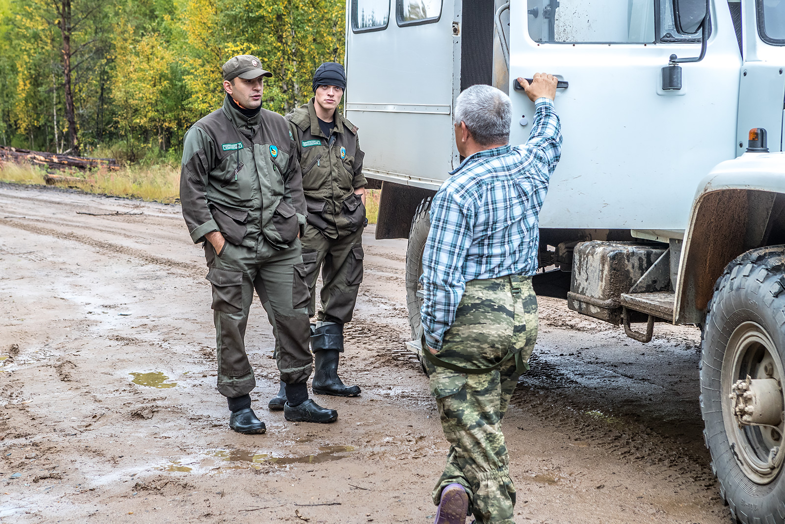 Команда экспедиции - три инспектора и фоторепортер. Учуваткин Филипп - заместитель директора по охране территории. Гейтман Надежда - старший государственный инспектор в области охраны окружающей среды. Якунин Леонид - государственный инспектор в области охраны окружающей среды. И фоторепортер Тимин.