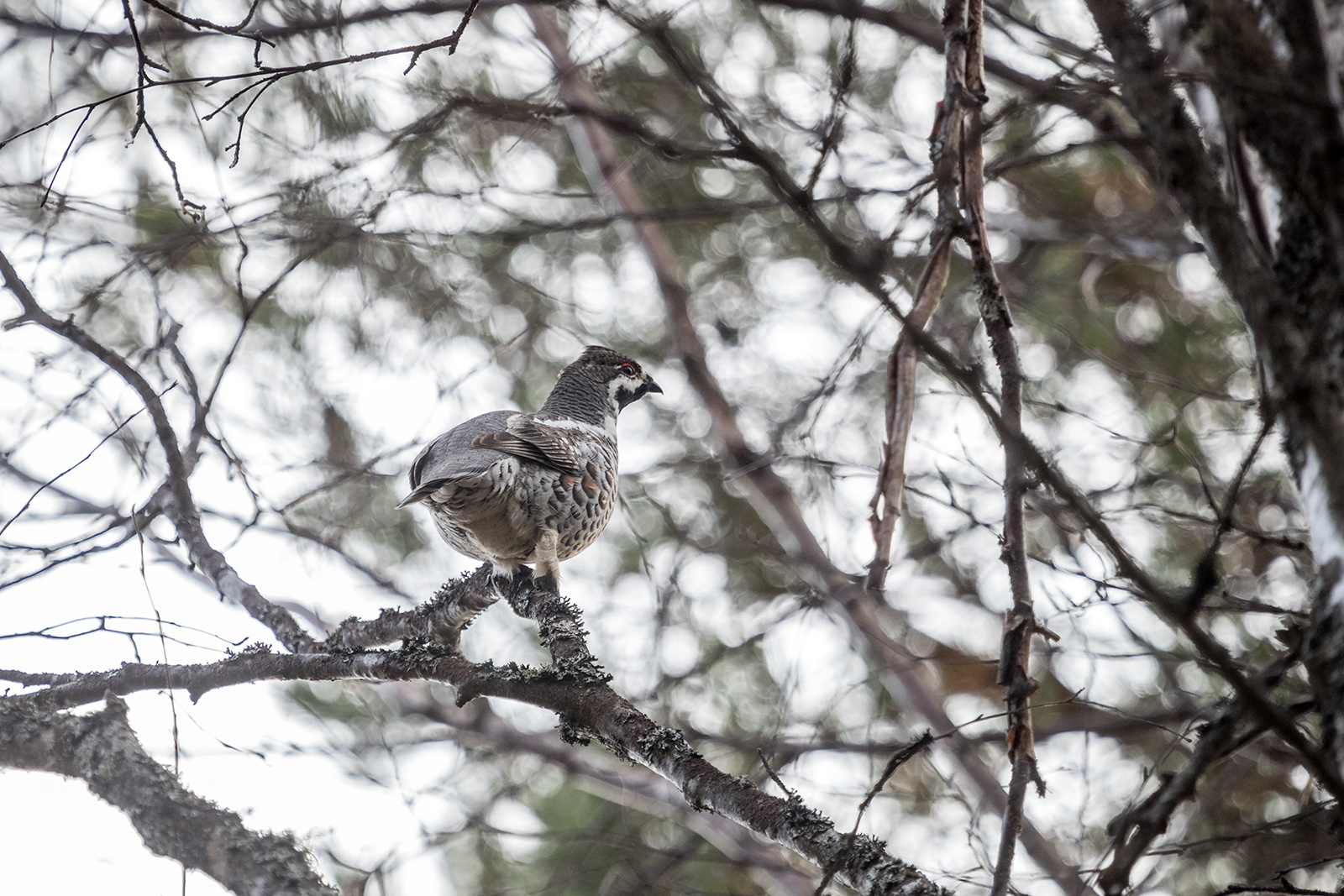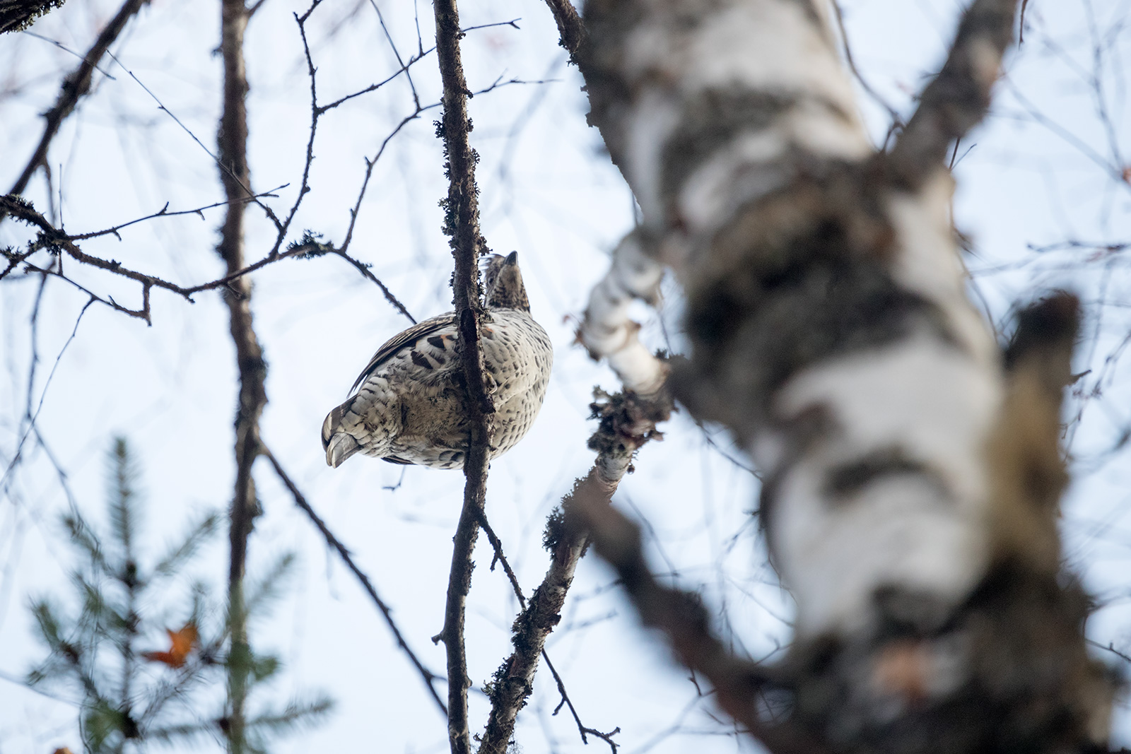 Из важных наблюдений - на фото четко виден момент, когда во время песни рябчик на мгновение прикрывает глаза. В этот момент наблюдатель может аккуратно поменять положение, переставить фотоаппарат или просто сменить положение.
