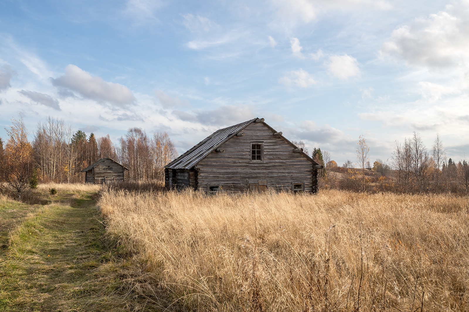 От древности и старины остался деревянный амбар, который вполне может потянуть на памятник архитектуры, некий деревянный дом, больше похожий на контору или магазин и несколько руинированных построек, которые вот-вот исчезнут в траве старых покосов.