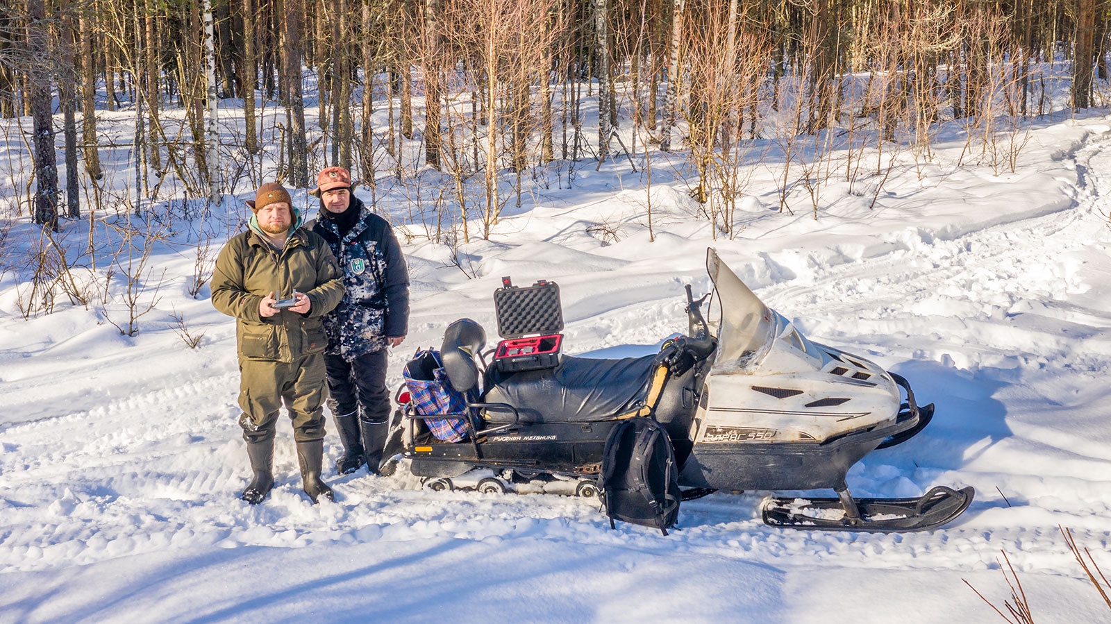 Мы провели наземный рейд по территории и частично осмотрели лес с помощью квадрокоптера. Как оказалось, после "закрытия охотсезона" неизвестными снегоходчиками, в лесном массиве, где весь февраль паслись более двух десятков лосей, остались всего 4 особи. Остальные животные вынуждены были покинуть привычную территорию и уйти глубже в лес (надеемся на это). Следов очевидного браконьерства в виде незаконной добычи животных или птиц мы не обнаружили, а ответственности за покатушки на снегоходах - не существует.