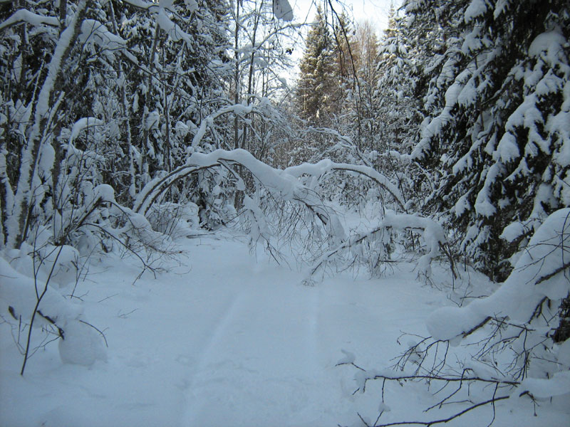 В результате прошли около 6 км, может чуть больше. Снега много. Наста нет. За 6 км - не единого следа зайца! И вообще со следами не густо. Радует, что лось вернулся на свои старопривычные позиции :) Наверное надо ему соли будет закинуть, что бы на следующий год не забыл придти в сезон.
