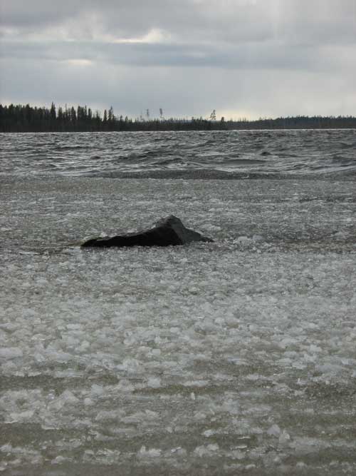 Приехали на озеро, а озеро встретило нас ледяным покровом. Но забереги уже большие.