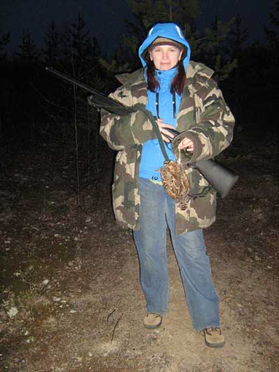 В 22.20 первое ц-кр-кр-ц. Готовность. Шапка - вверх. Вальдшнеп четко выправил курс на взлетевшую шапку и после выстрела упал в 4 метрах перед нами. Отличное начало тяги.