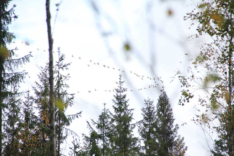 Поглядели с псом на журавлиные, лебединые и гусиные осенние клинышки и поехали домой... Чутка грибов наскреб - ведерко на жареху и ведерко волнушек второсортных на засолку.