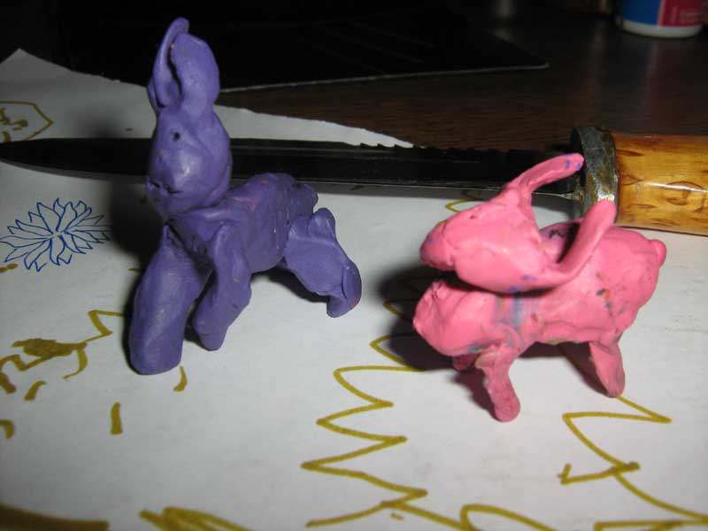 PS: По приезду домой меня ждали два сюрприза - отцовский охотничий нож, что неожидано нашелся в домашних закромах и два зайца, что слепила из пластилина четырехлетняя дочка.